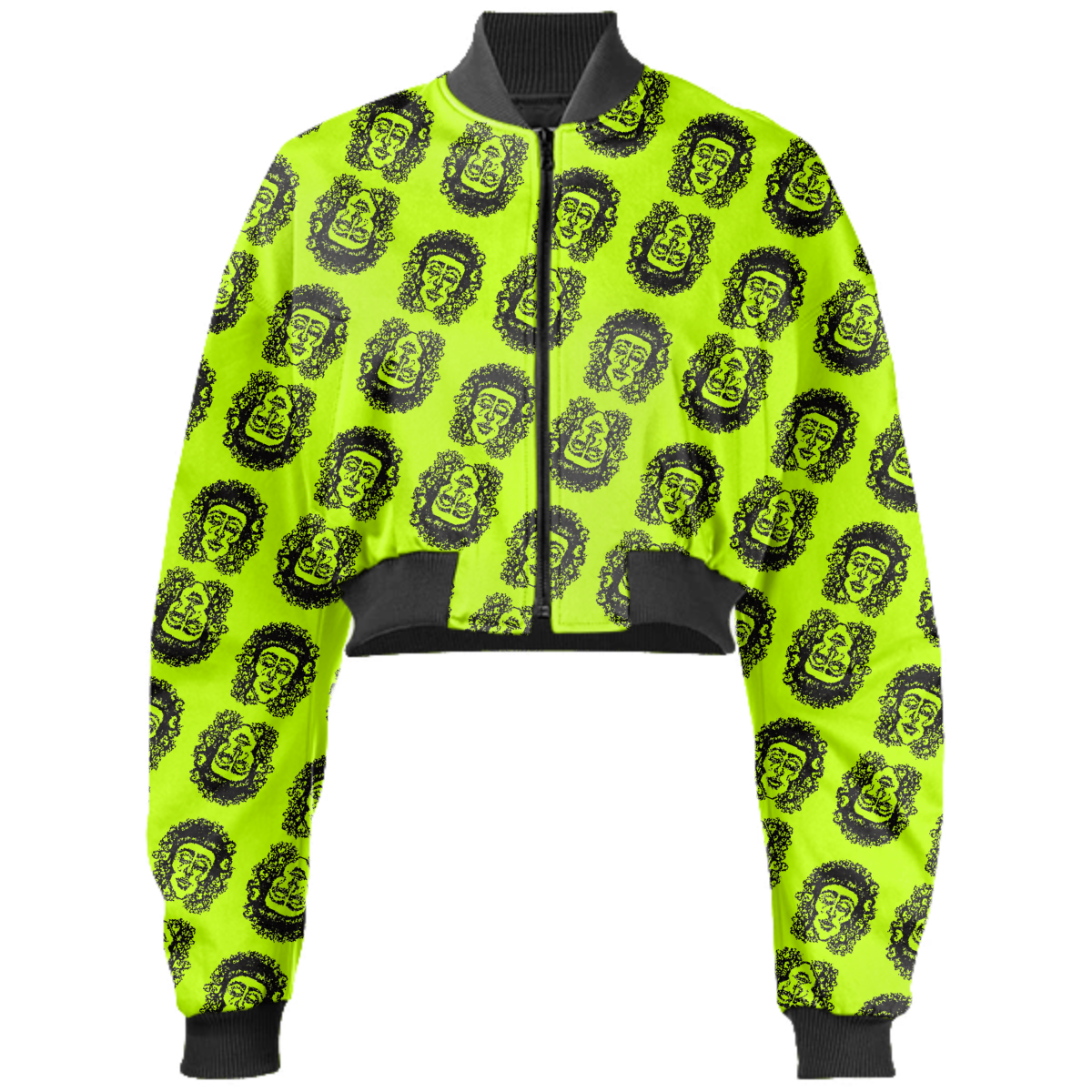 Designed by Gabriel Held this neoprene bomber jacket has a cropped fit with raglan sleeves a zip up front and two welt pockets. Matches with the Gabriel Held Mini Zip Skirt.