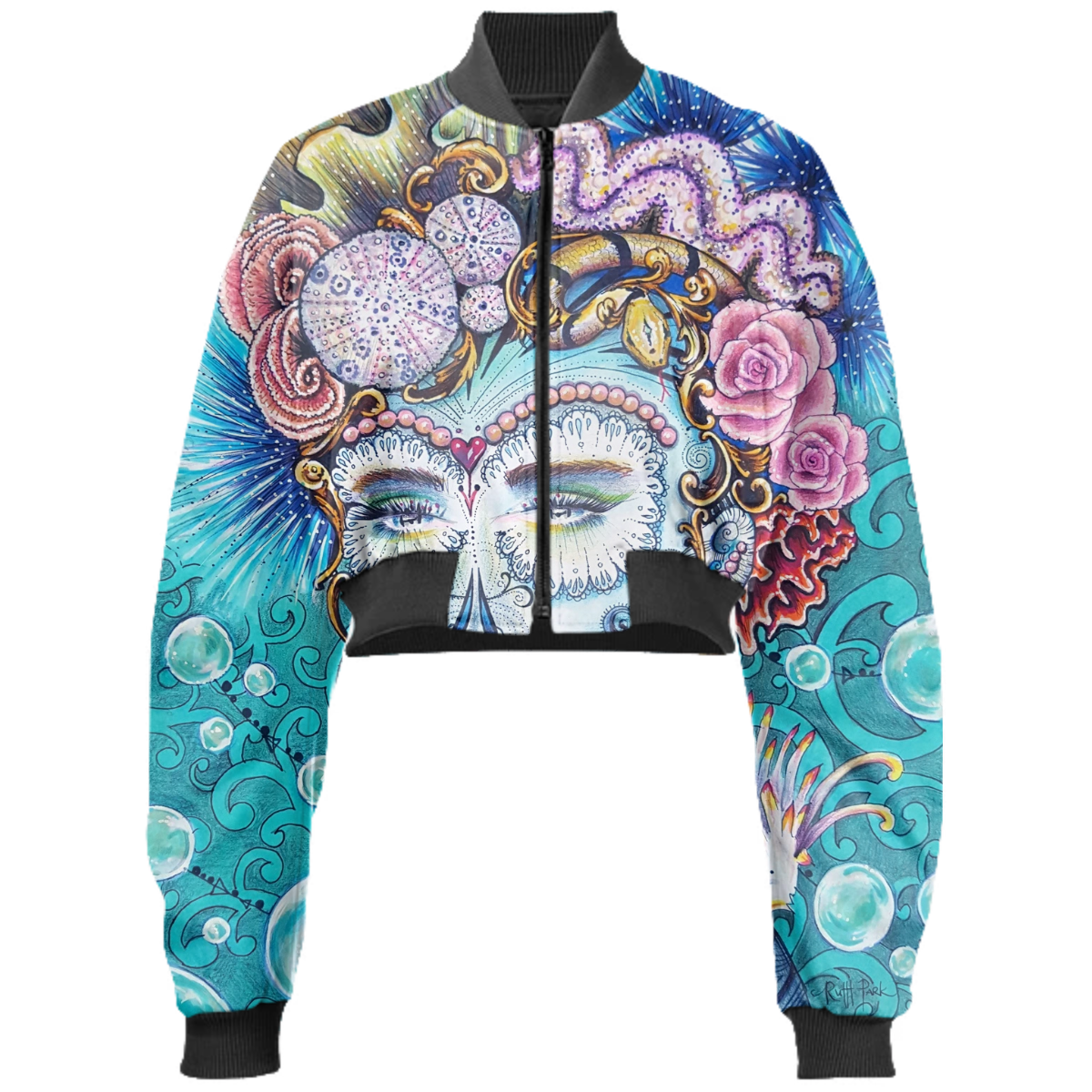 Designed by Gabriel Held this neoprene bomber jacket has a cropped fit with raglan sleeves a zip up front and two welt pockets. Matches with the Gabriel Held Mini Zip Skirt.