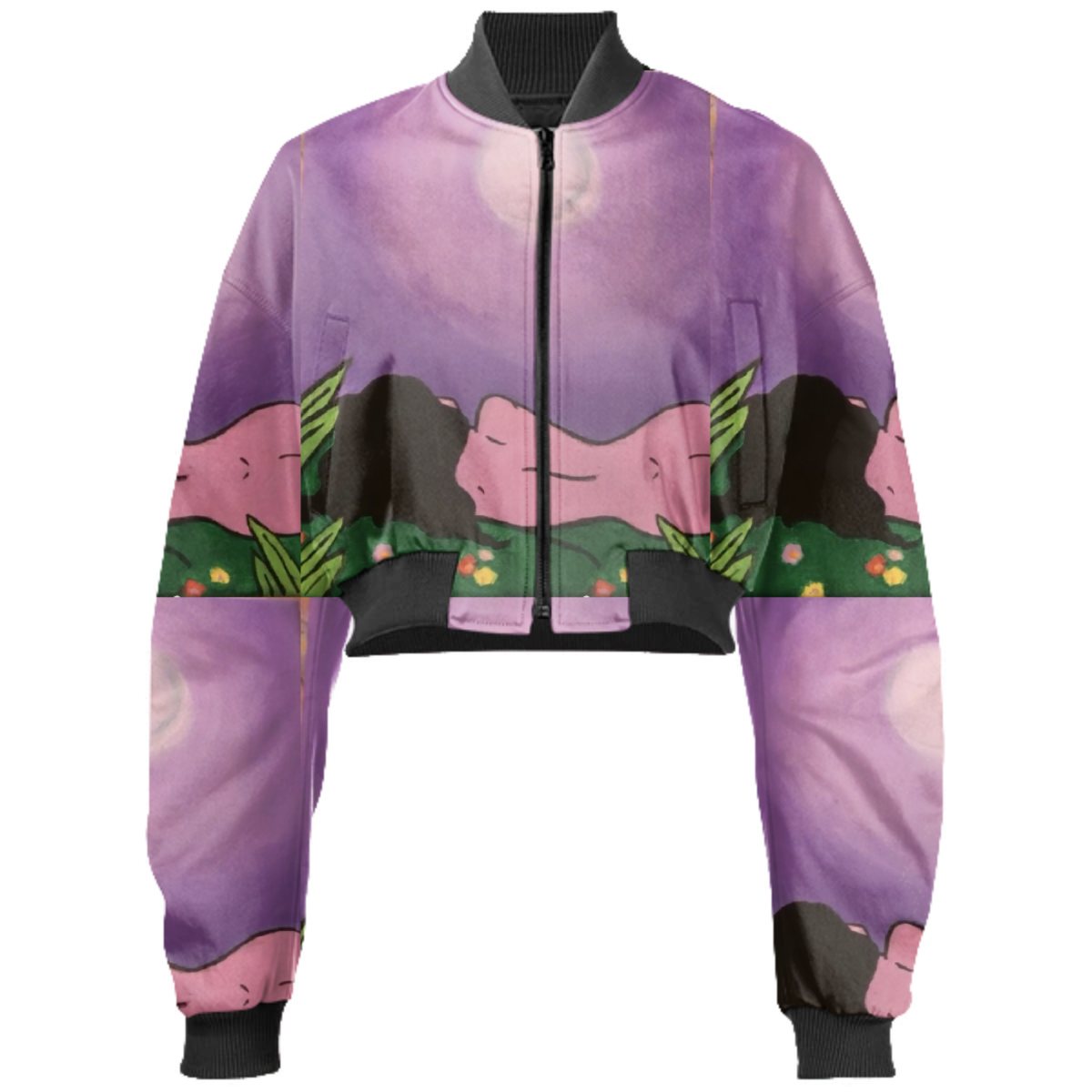 Designed by Gabriel Held this neoprene bomber jacket has a cropped fit with raglan sleeves a zip up front and two welt pockets. Matches with the Gabriel Held Mini Zip Skirt.
