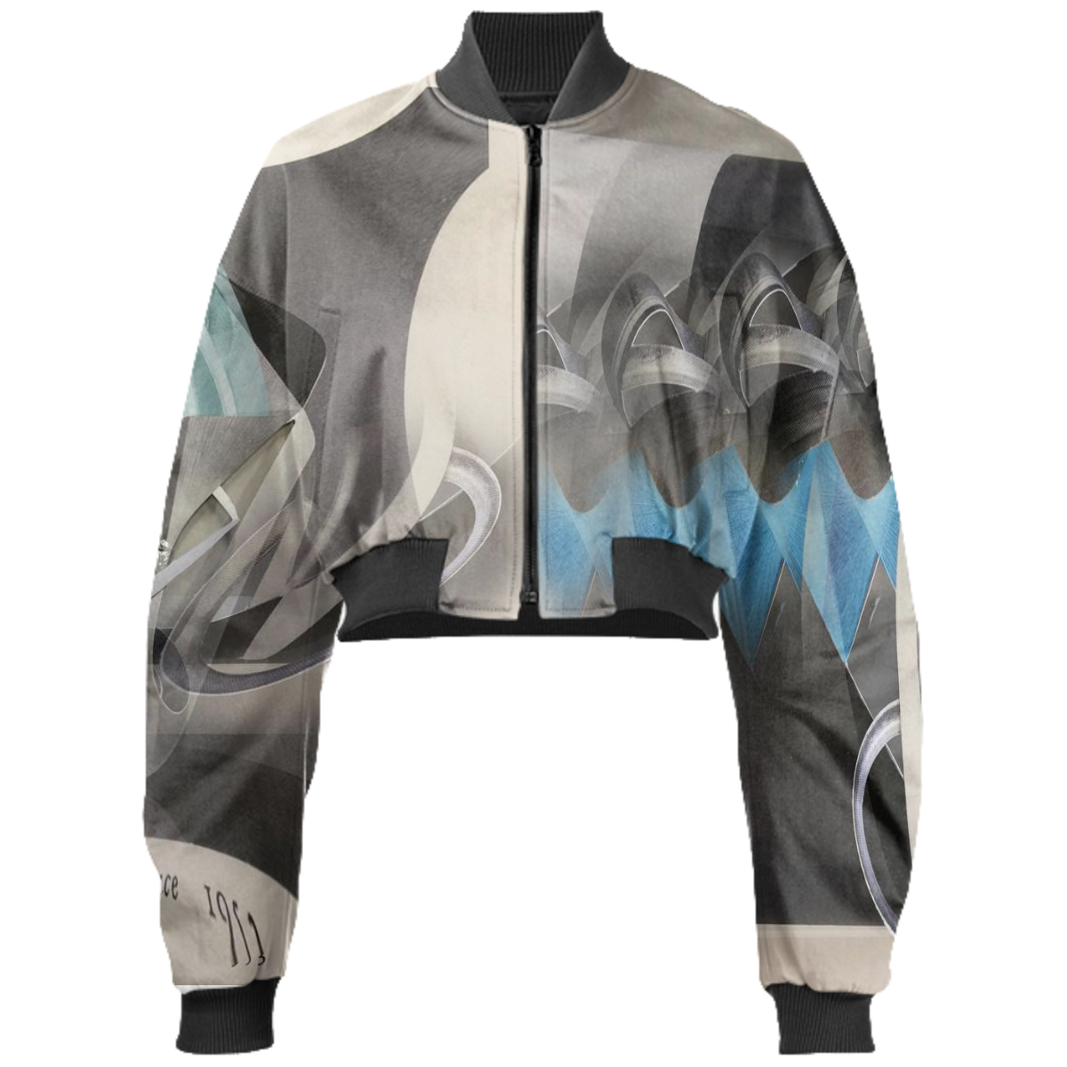 Designed by Gabriel Held this neoprene bomber jacket has a cropped fit with raglan sleeves a zip up front and two welt pockets. Matches with the Gabriel Held Mini Zip Skirt.