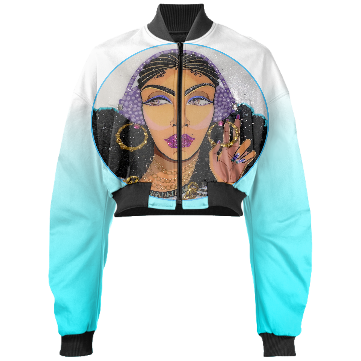 Designed by Gabriel Held this neoprene bomber jacket has a cropped fit with raglan sleeves a zip up front and two welt pockets. Matches with the Gabriel Held Mini Zip Skirt.