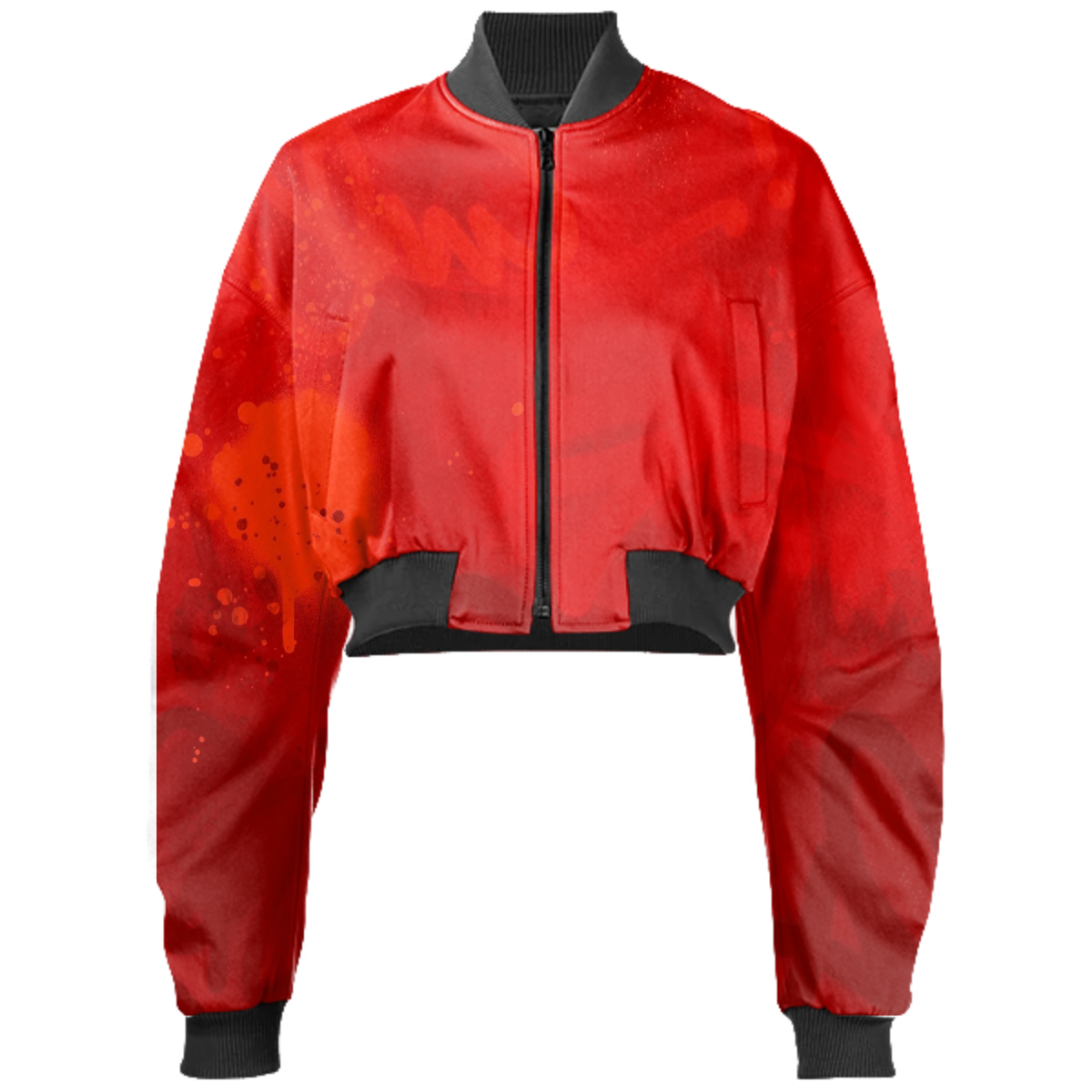 Designed by Gabriel Held this neoprene bomber jacket has a cropped fit with raglan sleeves a zip up front and two welt pockets. Matches with the Gabriel Held Mini Zip Skirt.