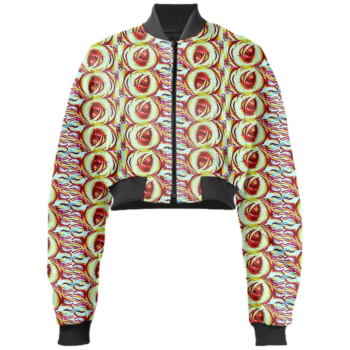 Designed by Gabriel Held this neoprene bomber jacket has a cropped fit with raglan sleeves a zip up front and two welt pockets. Matches with the Gabriel Held Mini Zip Skirt.