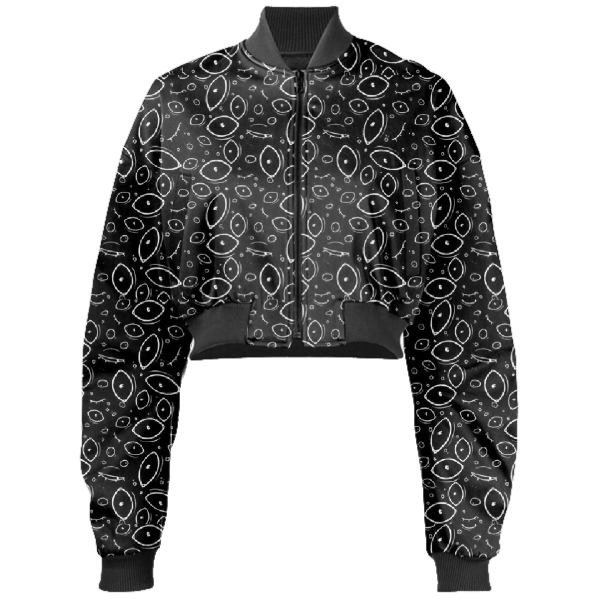 Designed by Gabriel Held this neoprene bomber jacket has a cropped fit with raglan sleeves a zip up front and two welt pockets. Matches with the Gabriel Held Mini Zip Skirt.