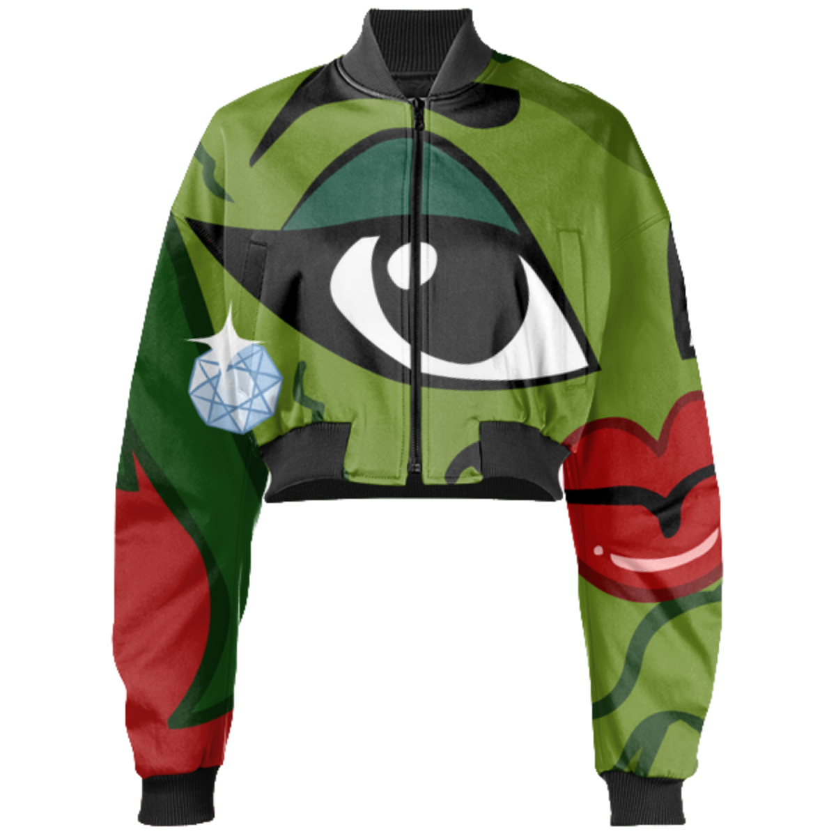 Designed by Gabriel Held this neoprene bomber jacket has a cropped fit with raglan sleeves a zip up front and two welt pockets. Matches with the Gabriel Held Mini Zip Skirt.