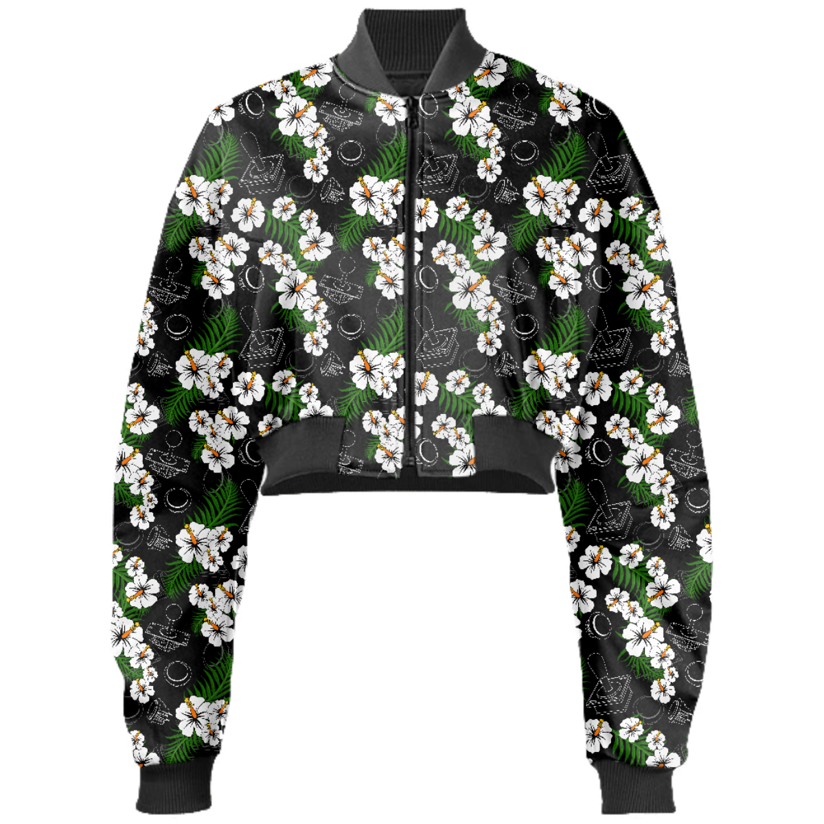 Designed by Gabriel Held this neoprene bomber jacket has a cropped fit with raglan sleeves a zip up front and two welt pockets. Matches with the Gabriel Held Mini Zip Skirt.