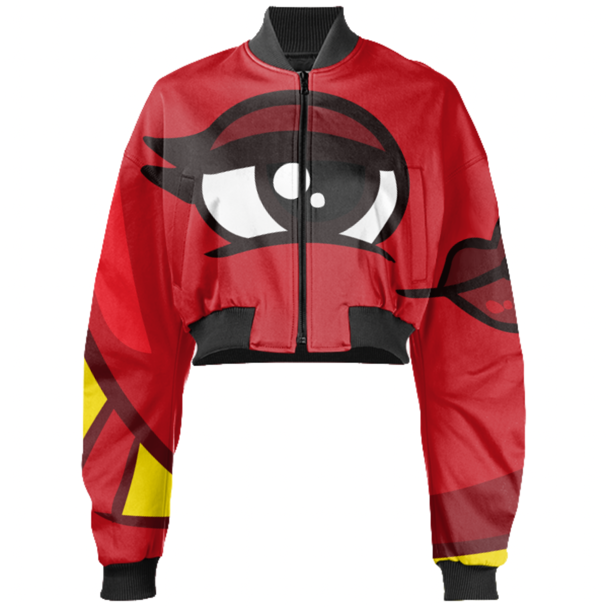 Designed by Gabriel Held this neoprene bomber jacket has a cropped fit with raglan sleeves a zip up front and two welt pockets. Matches with the Gabriel Held Mini Zip Skirt.