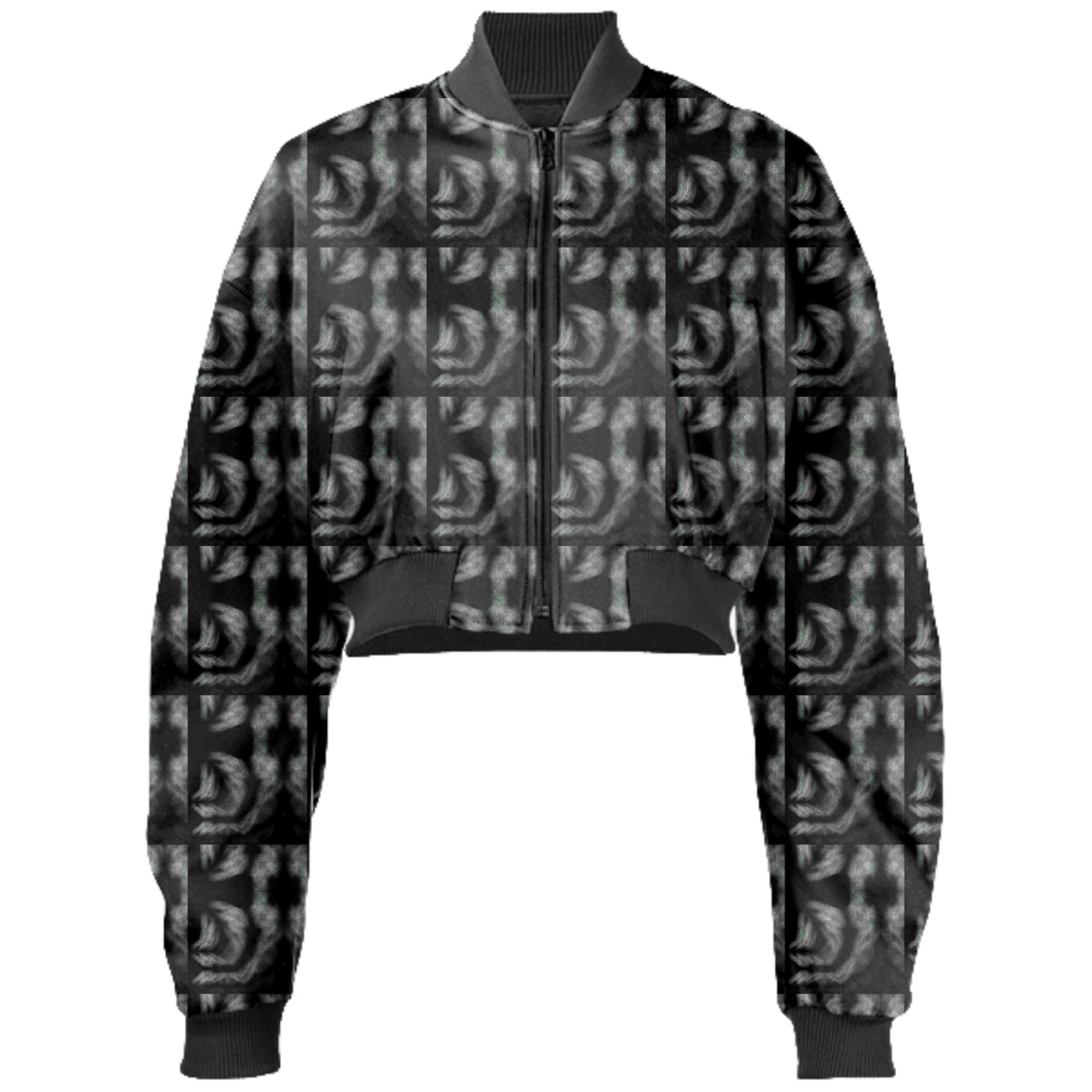 Designed by Gabriel Held this neoprene bomber jacket has a cropped fit with raglan sleeves a zip up front and two welt pockets. Matches with the Gabriel Held Mini Zip Skirt.