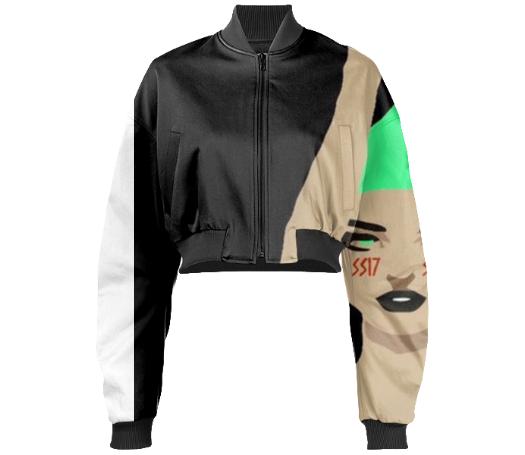 Designed by Gabriel Held this neoprene bomber jacket has a cropped fit with raglan sleeves a zip up front and two welt pockets. Matches with the Gabriel Held Mini Zip Skirt.