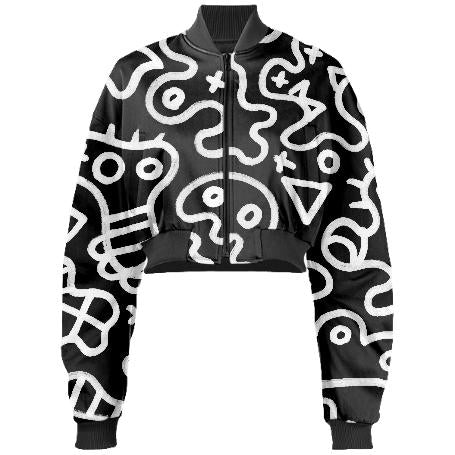 Designed by Gabriel Held this neoprene bomber jacket has a cropped fit with raglan sleeves a zip up front and two welt pockets. Matches with the Gabriel Held Mini Zip Skirt.