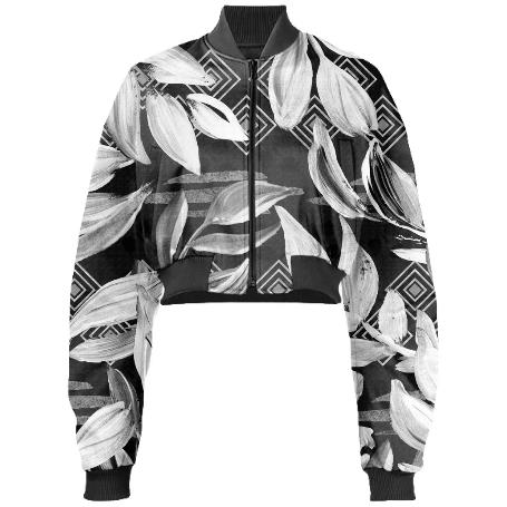 Designed by Gabriel Held this neoprene bomber jacket has a cropped fit with raglan sleeves a zip up front and two welt pockets. Matches with the Gabriel Held Mini Zip Skirt.