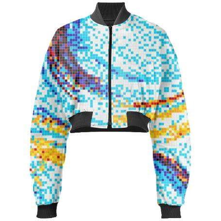 Designed by Gabriel Held this neoprene bomber jacket has a cropped fit with raglan sleeves a zip up front and two welt pockets. Matches with the Gabriel Held Mini Zip Skirt.