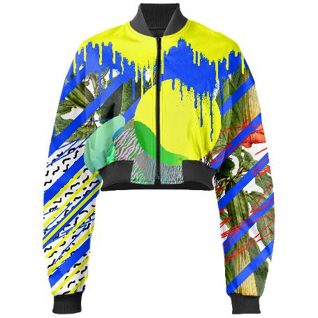 Designed by Gabriel Held this neoprene bomber jacket has a cropped fit with raglan sleeves a zip up front and two welt pockets. Matches with the Gabriel Held Mini Zip Skirt.