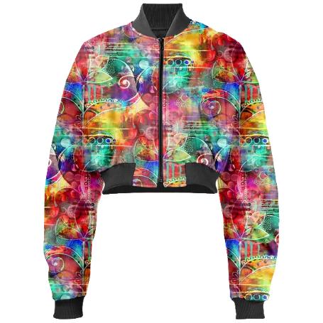 Designed by Gabriel Held this neoprene bomber jacket has a cropped fit with raglan sleeves a zip up front and two welt pockets. Matches with the Gabriel Held Mini Zip Skirt.