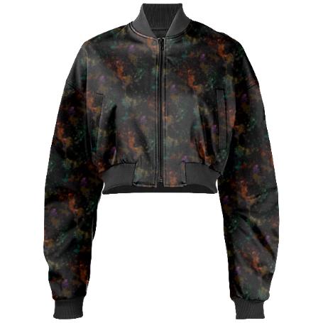 Designed by Gabriel Held this neoprene bomber jacket has a cropped fit with raglan sleeves a zip up front and two welt pockets. Matches with the Gabriel Held Mini Zip Skirt.