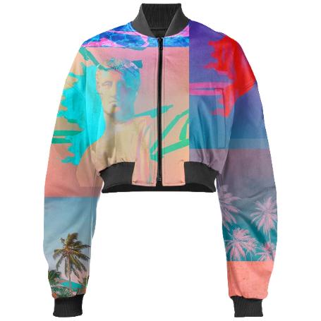 Designed by Gabriel Held this neoprene bomber jacket has a cropped fit with raglan sleeves a zip up front and two welt pockets. Matches with the Gabriel Held Mini Zip Skirt.