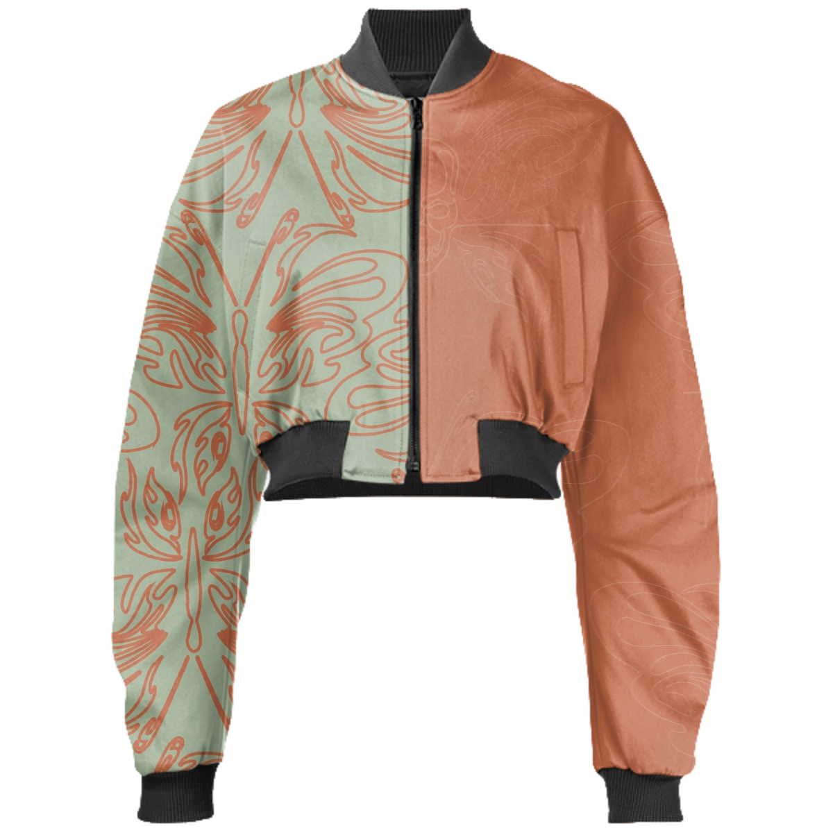 Designed by Gabriel Held this neoprene bomber jacket has a cropped fit with raglan sleeves a zip up front and two welt pockets. Matches with the Gabriel Held Mini Zip Skirt.