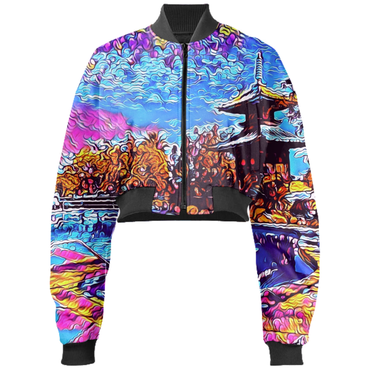 Designed by Gabriel Held this neoprene bomber jacket has a cropped fit with raglan sleeves a zip up front and two welt pockets. Matches with the Gabriel Held Mini Zip Skirt.