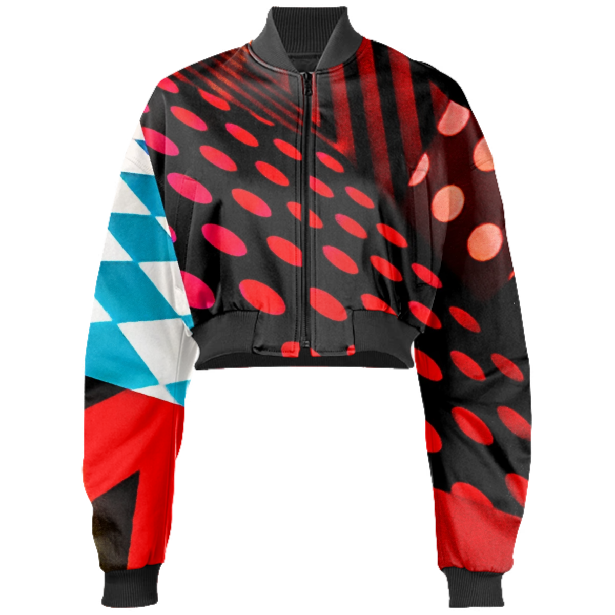 Designed by Gabriel Held this neoprene bomber jacket has a cropped fit with raglan sleeves a zip up front and two welt pockets. Matches with the Gabriel Held Mini Zip Skirt.
