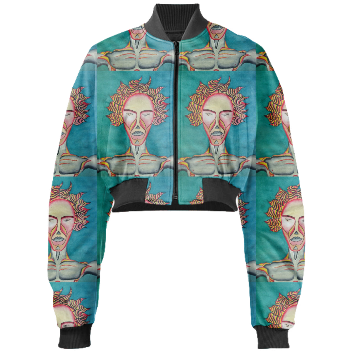 Designed by Gabriel Held this neoprene bomber jacket has a cropped fit with raglan sleeves a zip up front and two welt pockets. Matches with the Gabriel Held Mini Zip Skirt.
