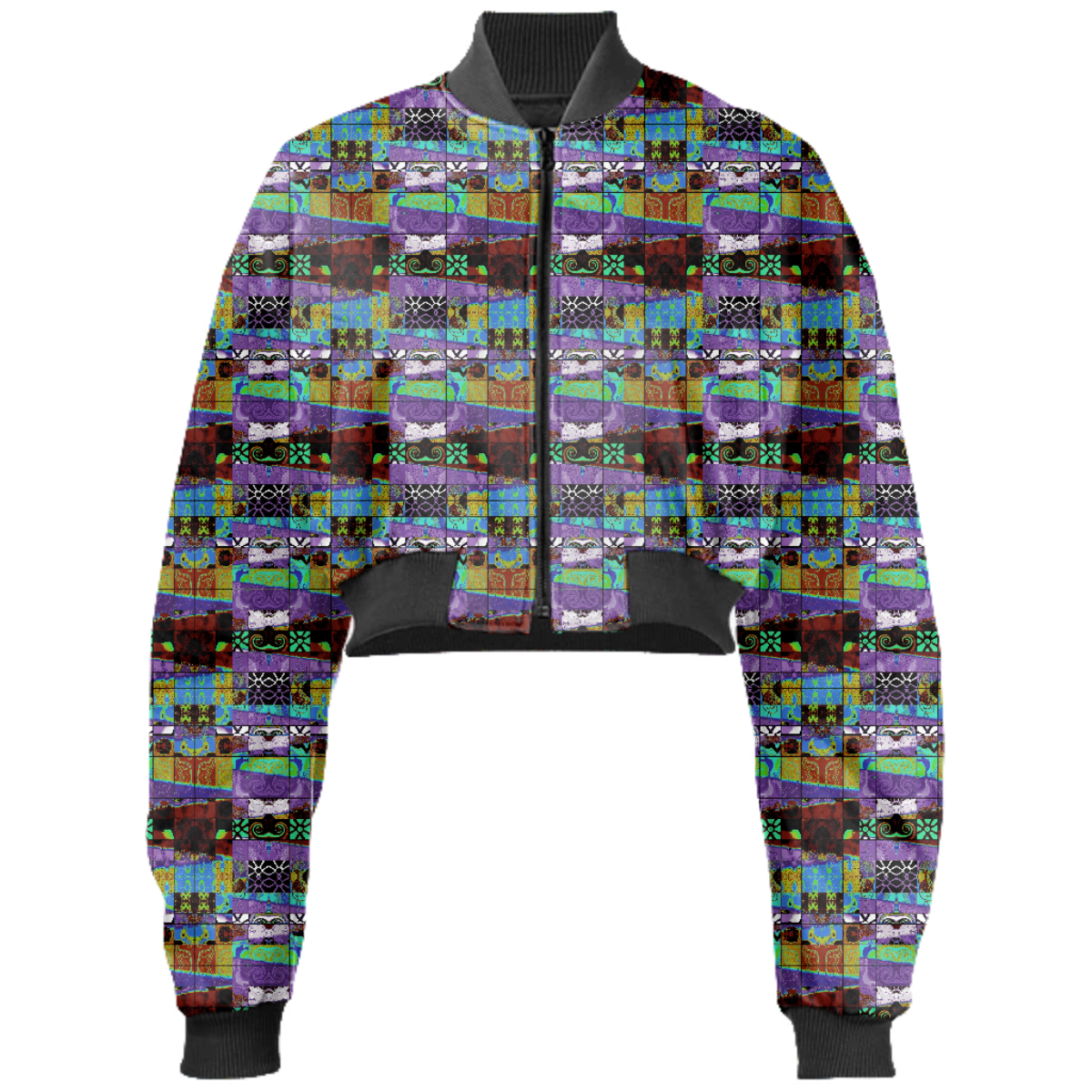 Designed by Gabriel Held this neoprene bomber jacket has a cropped fit with raglan sleeves a zip up front and two welt pockets. Matches with the Gabriel Held Mini Zip Skirt.