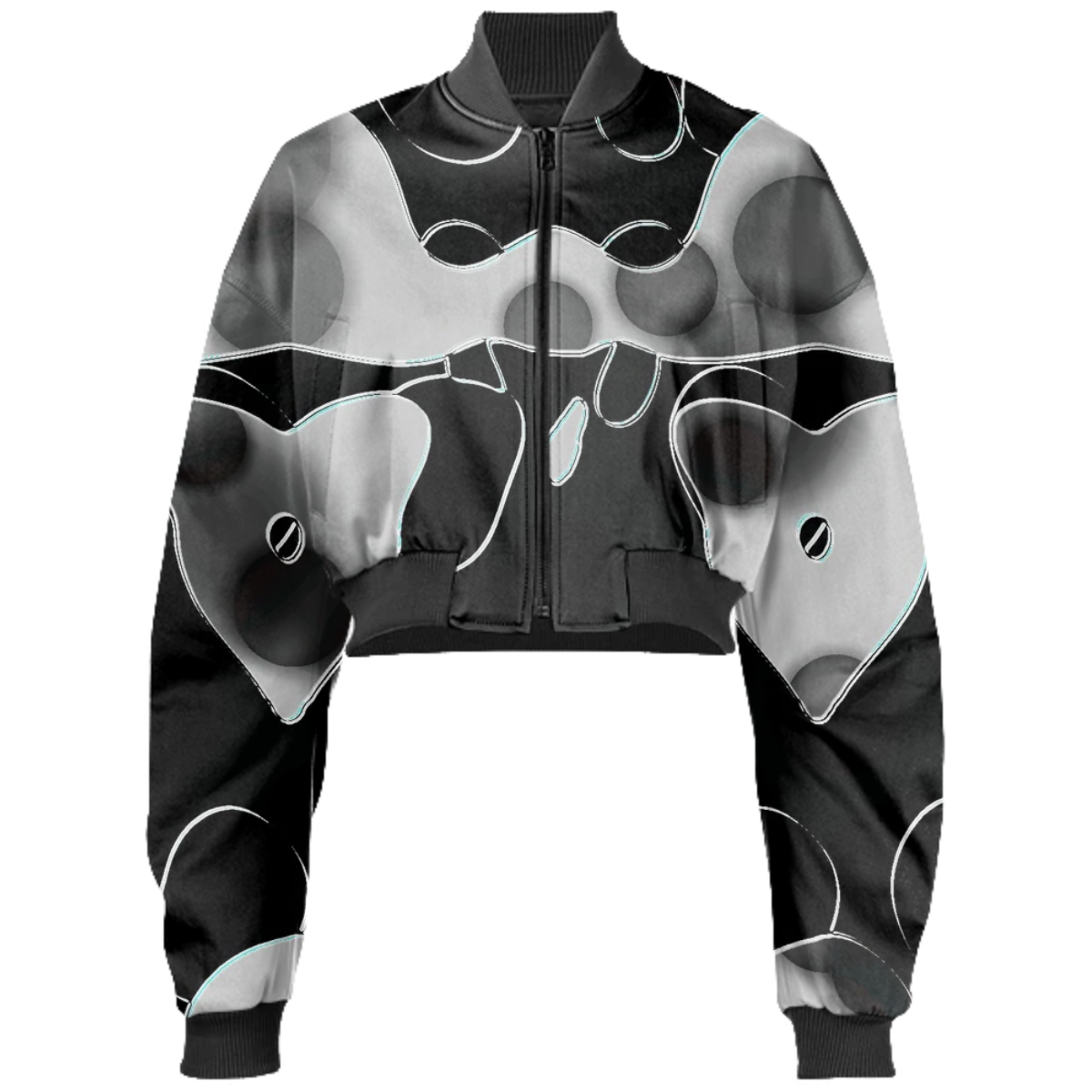 Designed by Gabriel Held this neoprene bomber jacket has a cropped fit with raglan sleeves a zip up front and two welt pockets. Matches with the Gabriel Held Mini Zip Skirt.