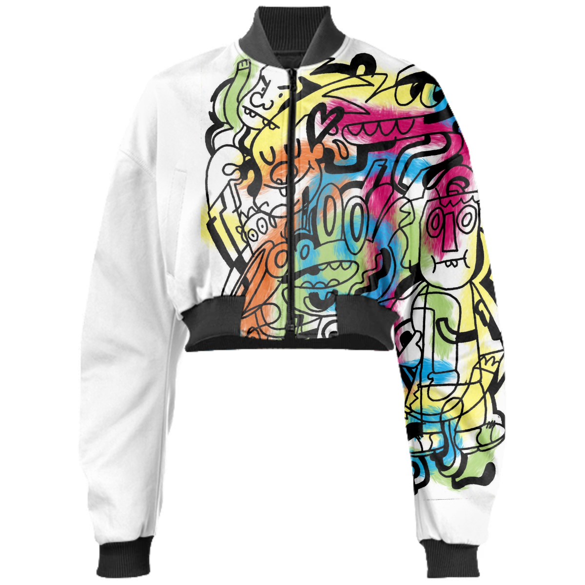 Designed by Gabriel Held this neoprene bomber jacket has a cropped fit with raglan sleeves a zip up front and two welt pockets. Matches with the Gabriel Held Mini Zip Skirt.