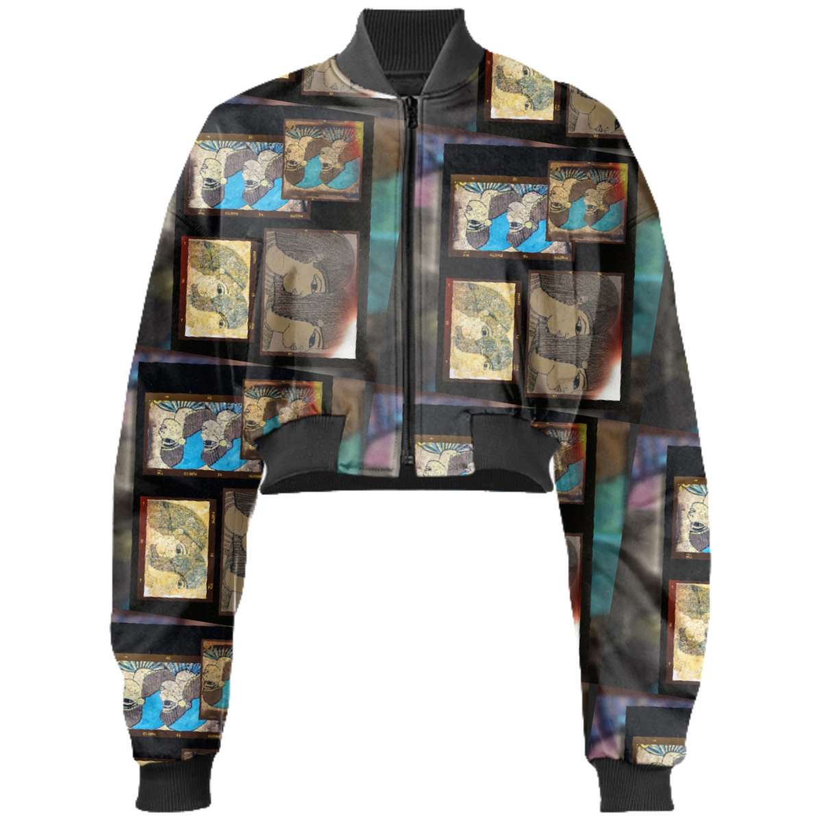 Designed by Gabriel Held this neoprene bomber jacket has a cropped fit with raglan sleeves a zip up front and two welt pockets. Matches with the Gabriel Held Mini Zip Skirt.