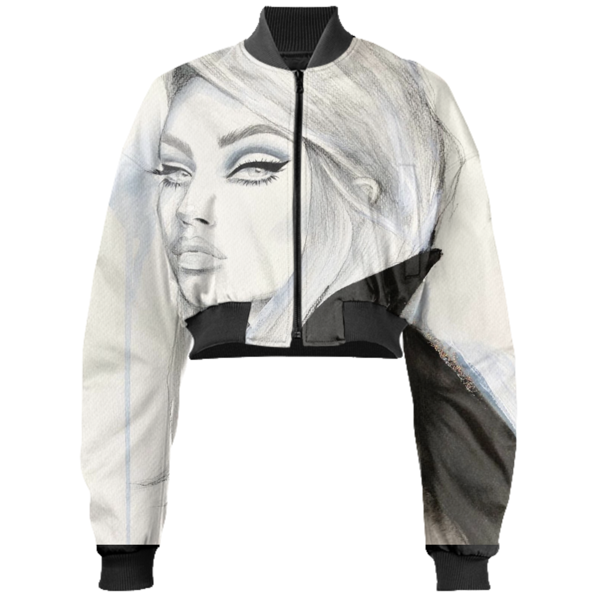 Designed by Gabriel Held this neoprene bomber jacket has a cropped fit with raglan sleeves a zip up front and two welt pockets. Matches with the Gabriel Held Mini Zip Skirt.