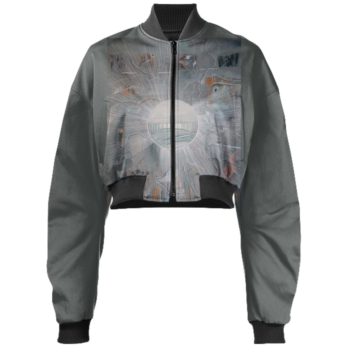 Designed by Gabriel Held this neoprene bomber jacket has a cropped fit with raglan sleeves a zip up front and two welt pockets. Matches with the Gabriel Held Mini Zip Skirt.