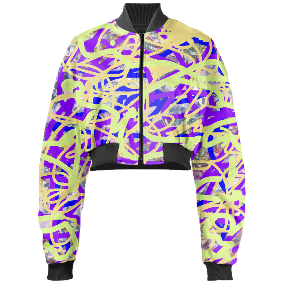 Designed by Gabriel Held this neoprene bomber jacket has a cropped fit with raglan sleeves a zip up front and two welt pockets. Matches with the Gabriel Held Mini Zip Skirt.