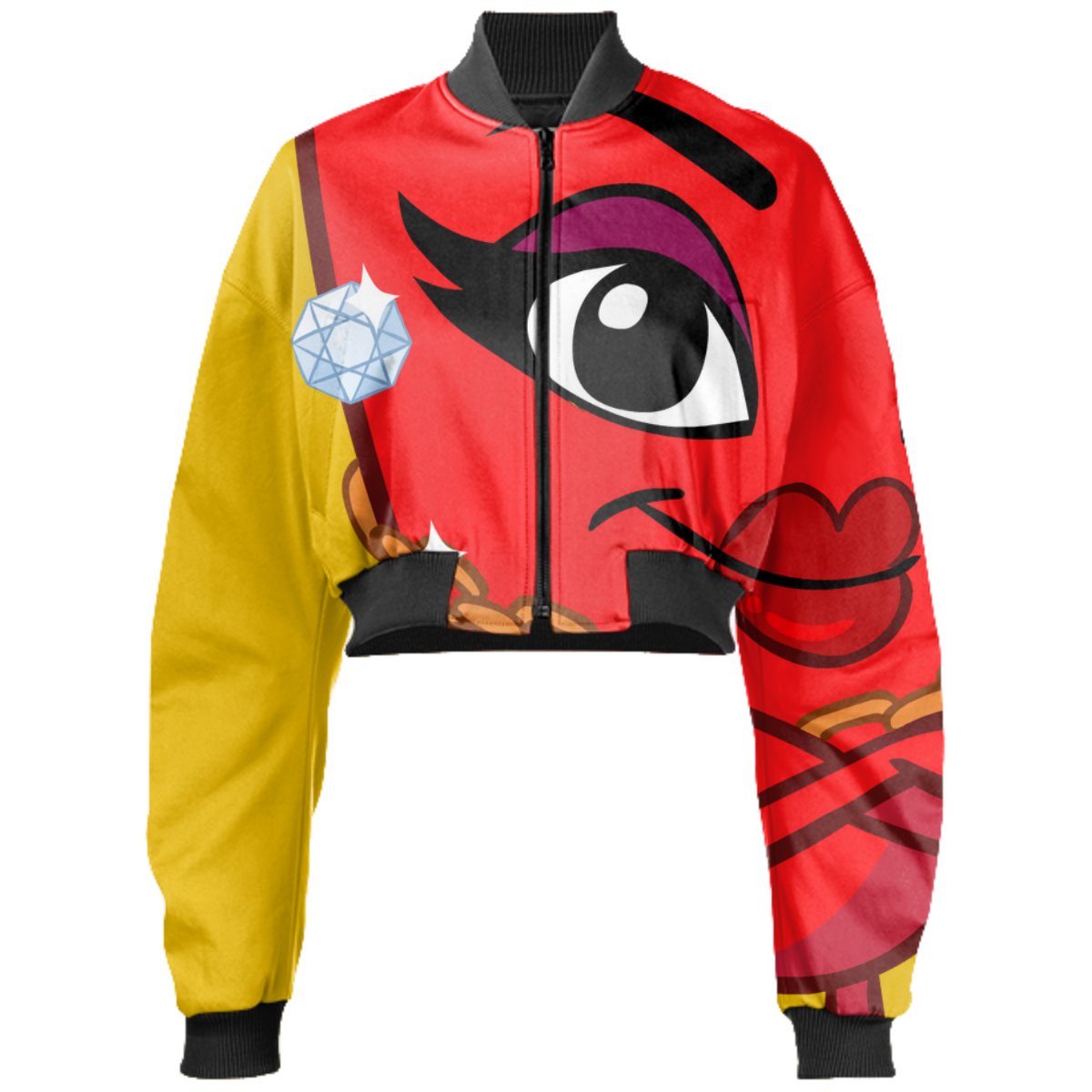Designed by Gabriel Held this neoprene bomber jacket has a cropped fit with raglan sleeves a zip up front and two welt pockets. Matches with the Gabriel Held Mini Zip Skirt.