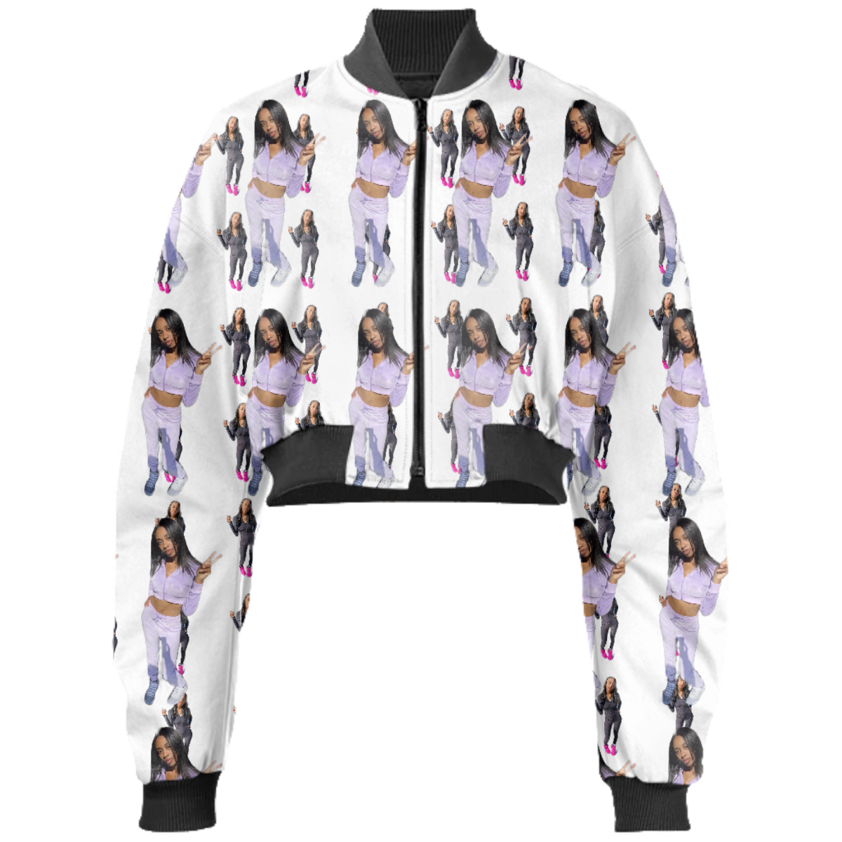 Designed by Gabriel Held this neoprene bomber jacket has a cropped fit with raglan sleeves a zip up front and two welt pockets. Matches with the Gabriel Held Mini Zip Skirt.