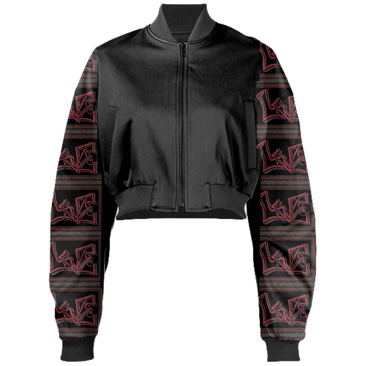 Designed by Gabriel Held this neoprene bomber jacket has a cropped fit with raglan sleeves a zip up front and two welt pockets. Matches with the Gabriel Held Mini Zip Skirt.