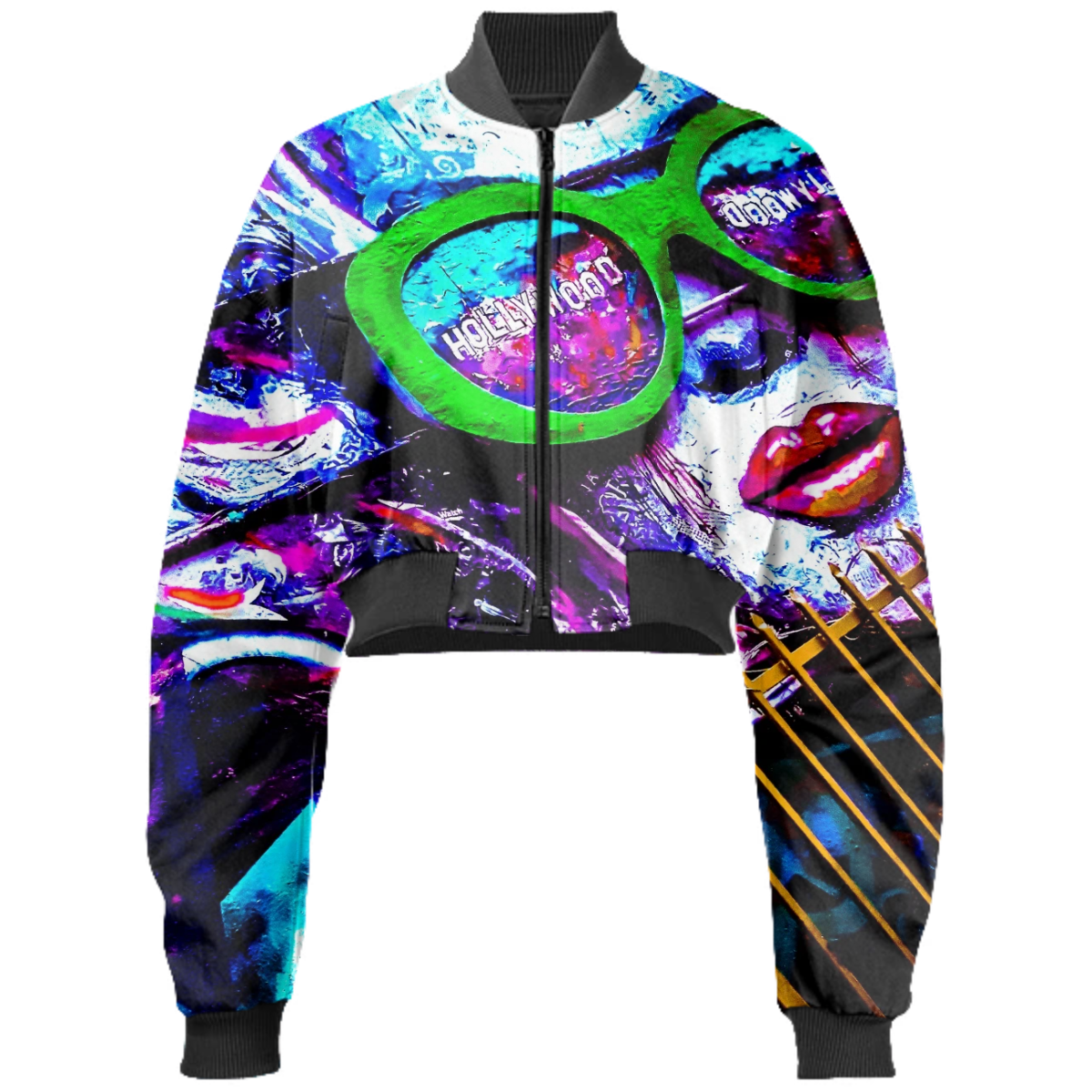 Designed by Gabriel Held this neoprene bomber jacket has a cropped fit with raglan sleeves a zip up front and two welt pockets. Matches with the Gabriel Held Mini Zip Skirt.