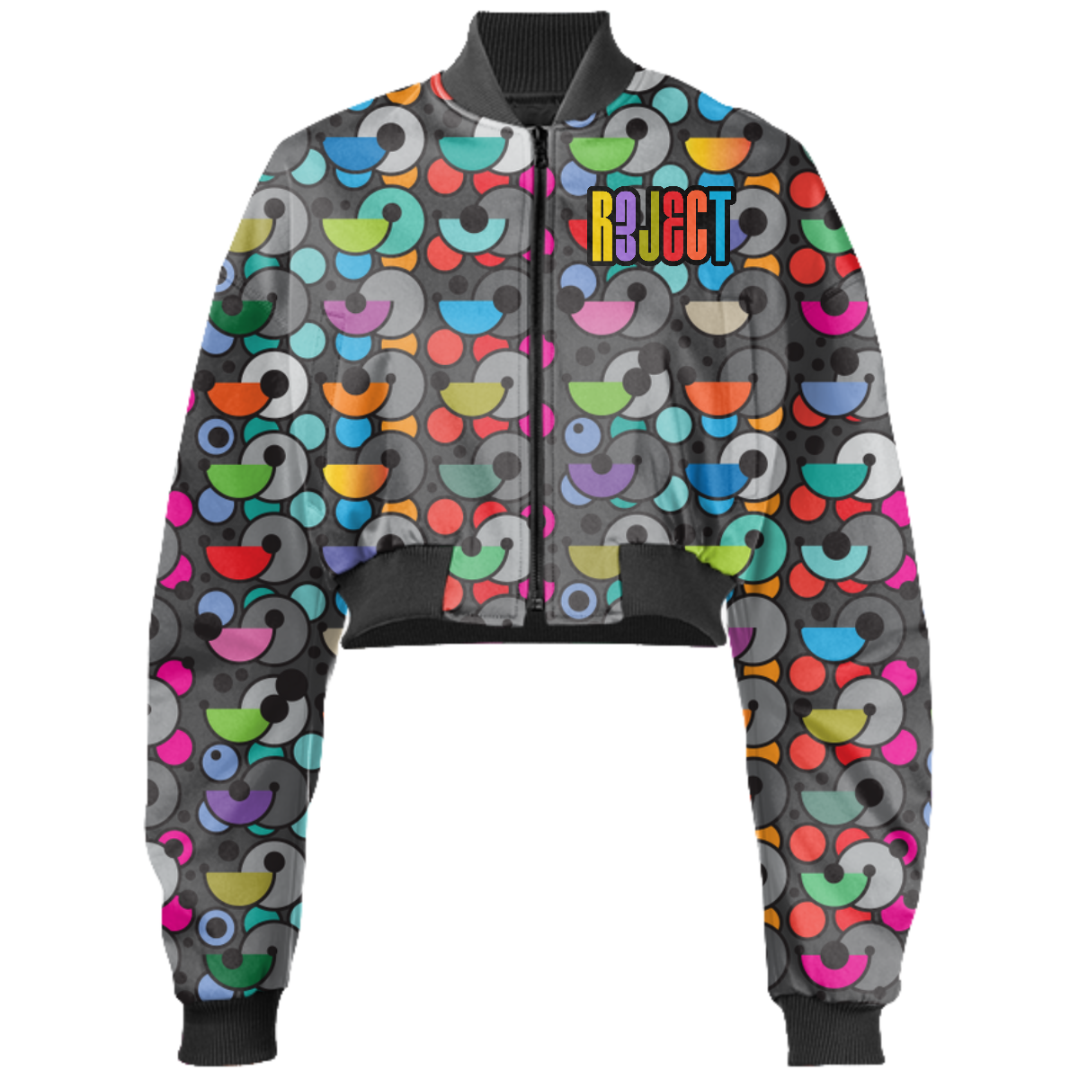 Designed by Gabriel Held this neoprene bomber jacket has a cropped fit with raglan sleeves a zip up front and two welt pockets. Matches with the Gabriel Held Mini Zip Skirt.