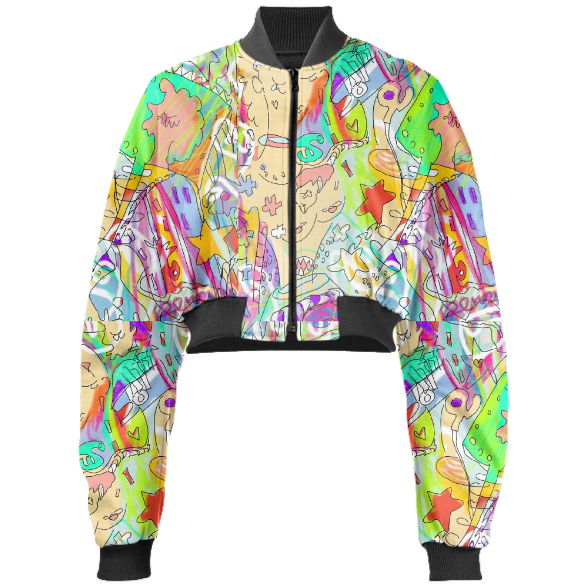 Designed by Gabriel Held this neoprene bomber jacket has a cropped fit with raglan sleeves a zip up front and two welt pockets. Matches with the Gabriel Held Mini Zip Skirt.
