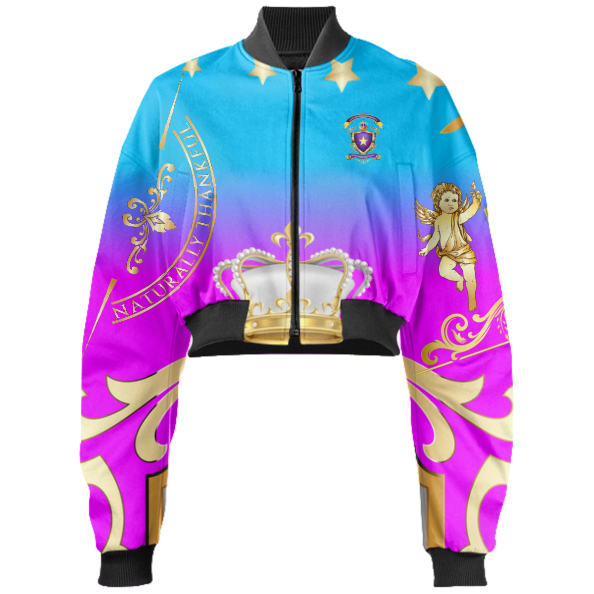Designed by Gabriel Held this neoprene bomber jacket has a cropped fit with raglan sleeves a zip up front and two welt pockets. Matches with the Gabriel Held Mini Zip Skirt.