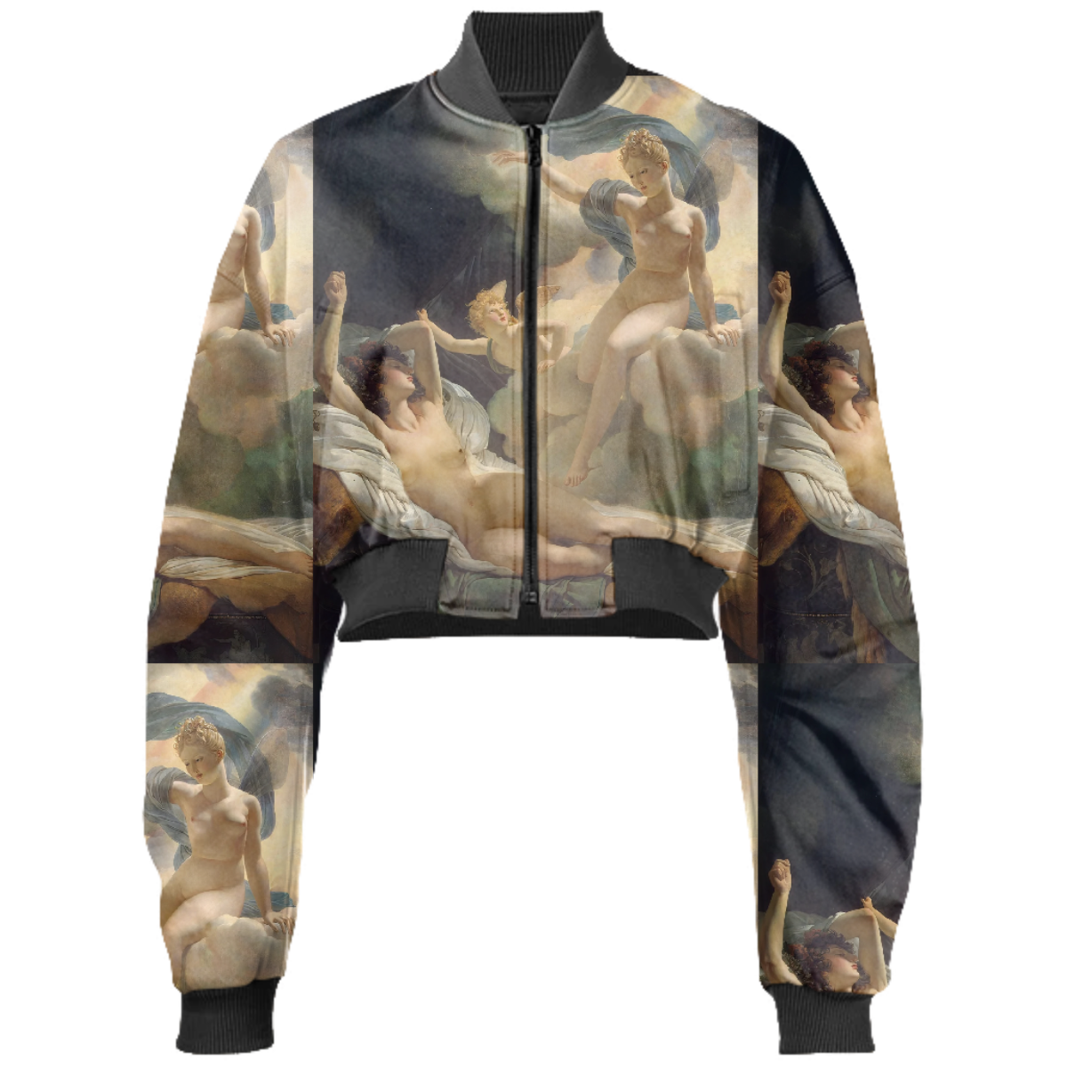 Designed by Gabriel Held this neoprene bomber jacket has a cropped fit with raglan sleeves a zip up front and two welt pockets. Matches with the Gabriel Held Mini Zip Skirt.