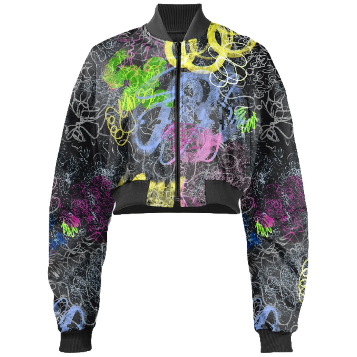 Designed by Gabriel Held this neoprene bomber jacket has a cropped fit with raglan sleeves a zip up front and two welt pockets. Matches with the Gabriel Held Mini Zip Skirt.