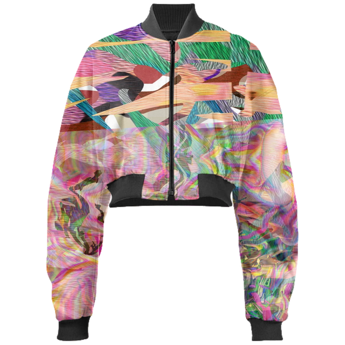 Designed by Gabriel Held this neoprene bomber jacket has a cropped fit with raglan sleeves a zip up front and two welt pockets. Matches with the Gabriel Held Mini Zip Skirt.