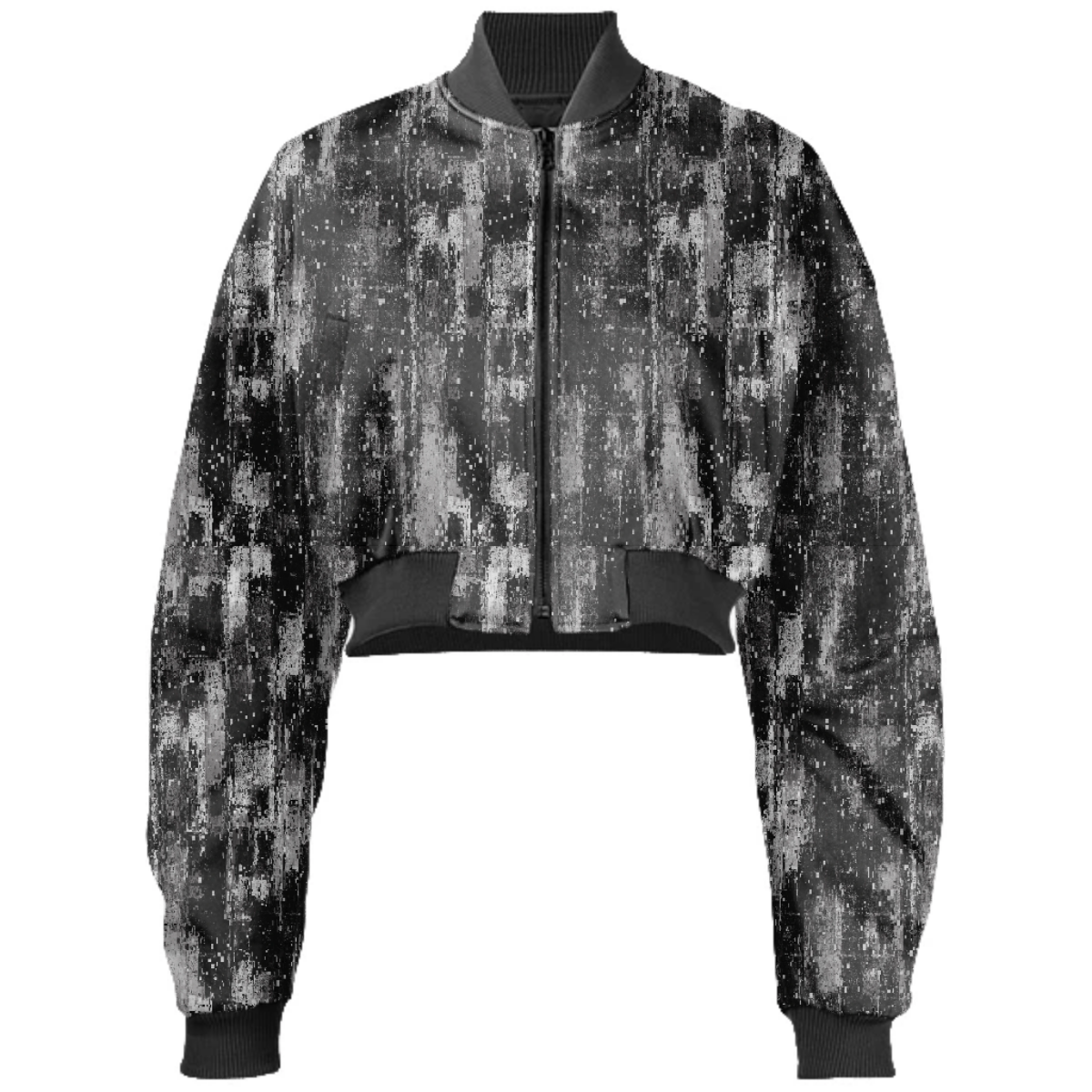Designed by Gabriel Held this neoprene bomber jacket has a cropped fit with raglan sleeves a zip up front and two welt pockets. Matches with the Gabriel Held Mini Zip Skirt.