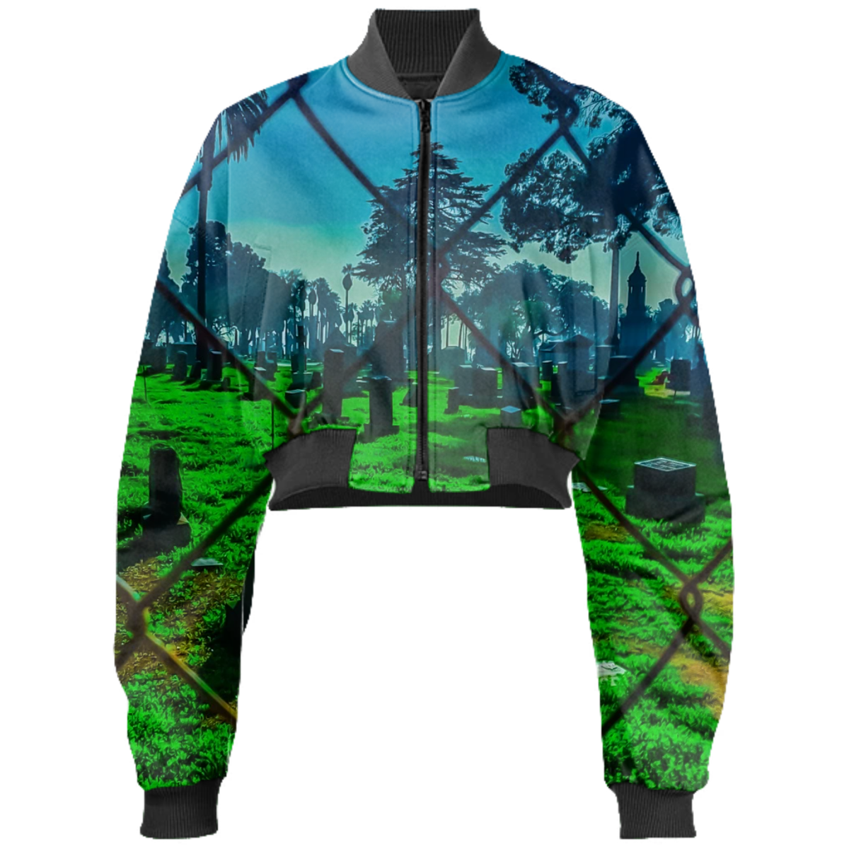 Designed by Gabriel Held this neoprene bomber jacket has a cropped fit with raglan sleeves a zip up front and two welt pockets. Matches with the Gabriel Held Mini Zip Skirt.