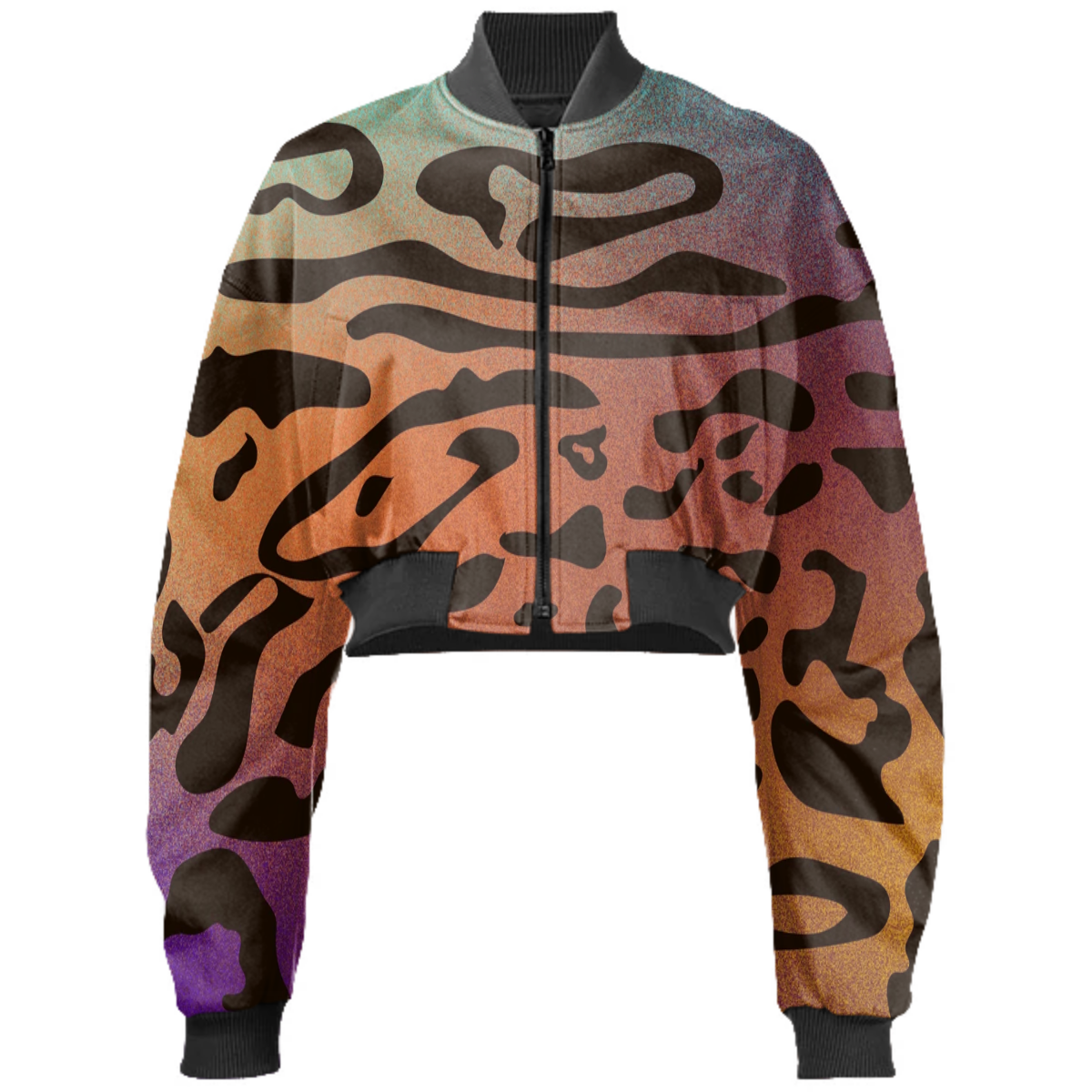 Designed by Gabriel Held this neoprene bomber jacket has a cropped fit with raglan sleeves a zip up front and two welt pockets. Matches with the Gabriel Held Mini Zip Skirt.