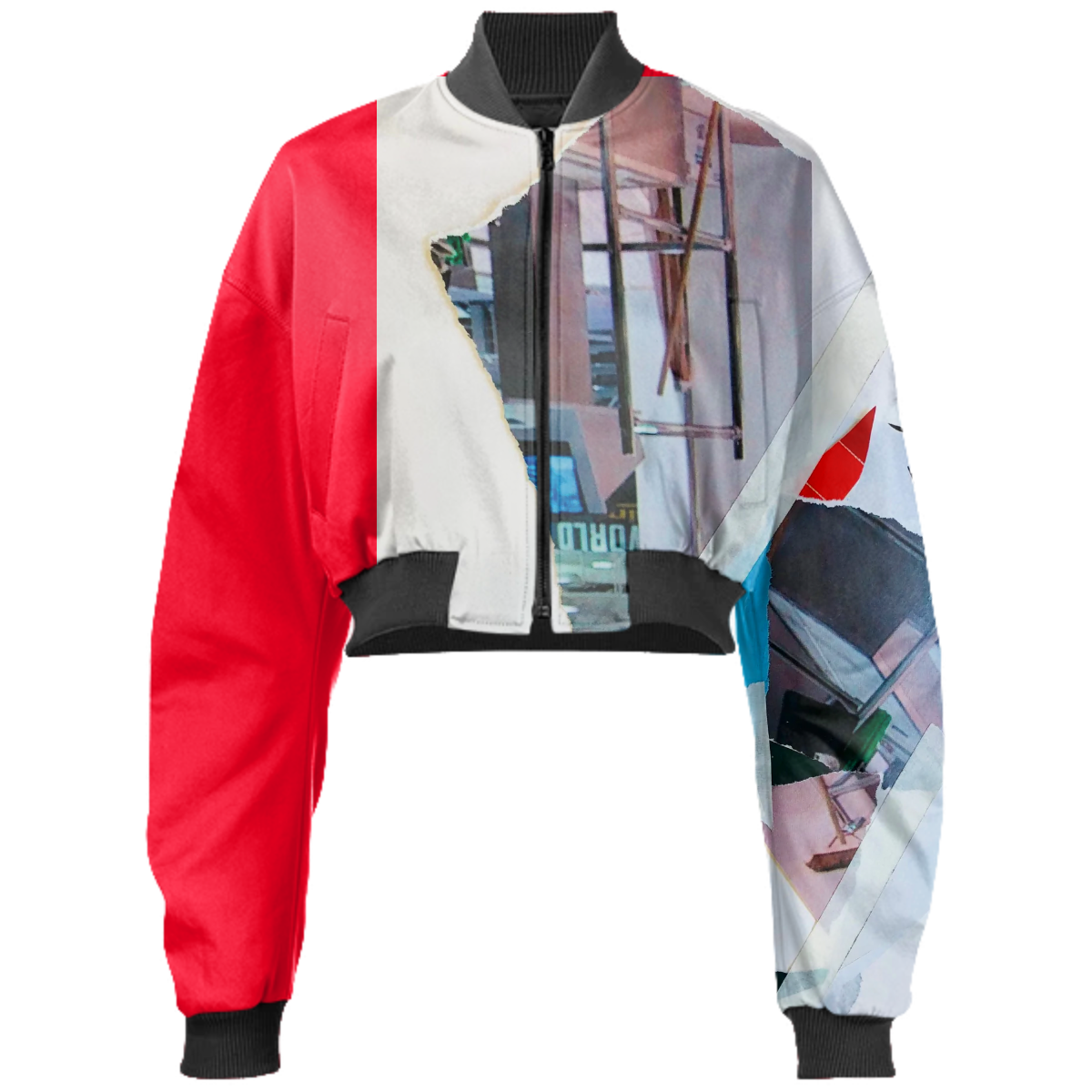 Designed by Gabriel Held this neoprene bomber jacket has a cropped fit with raglan sleeves a zip up front and two welt pockets. Matches with the Gabriel Held Mini Zip Skirt.