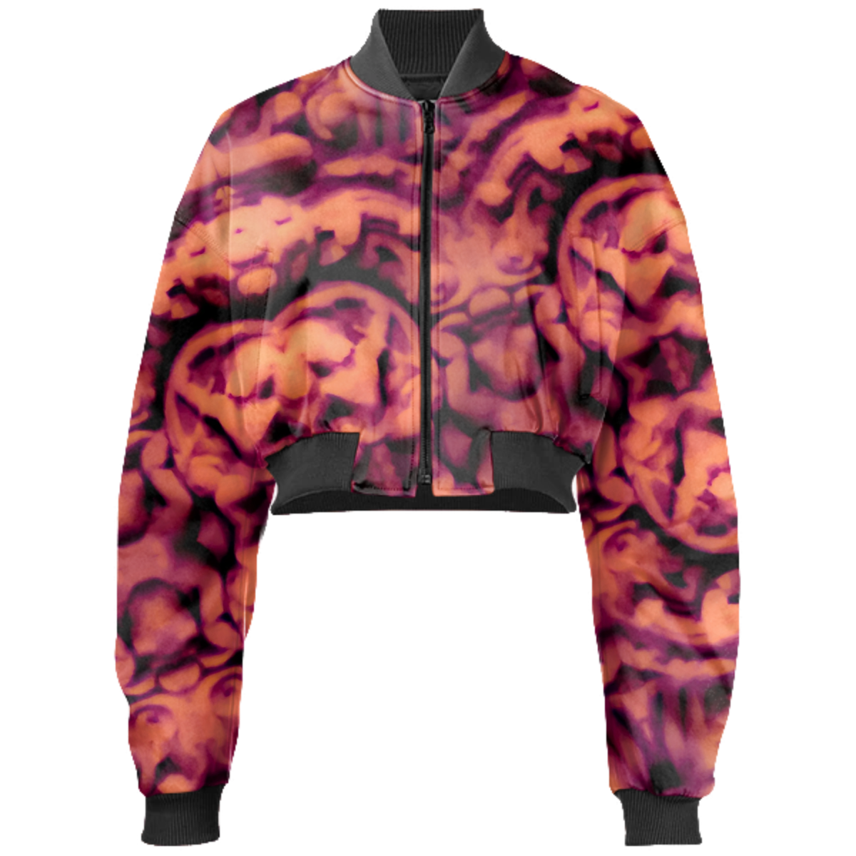 Designed by Gabriel Held this neoprene bomber jacket has a cropped fit with raglan sleeves a zip up front and two welt pockets. Matches with the Gabriel Held Mini Zip Skirt.