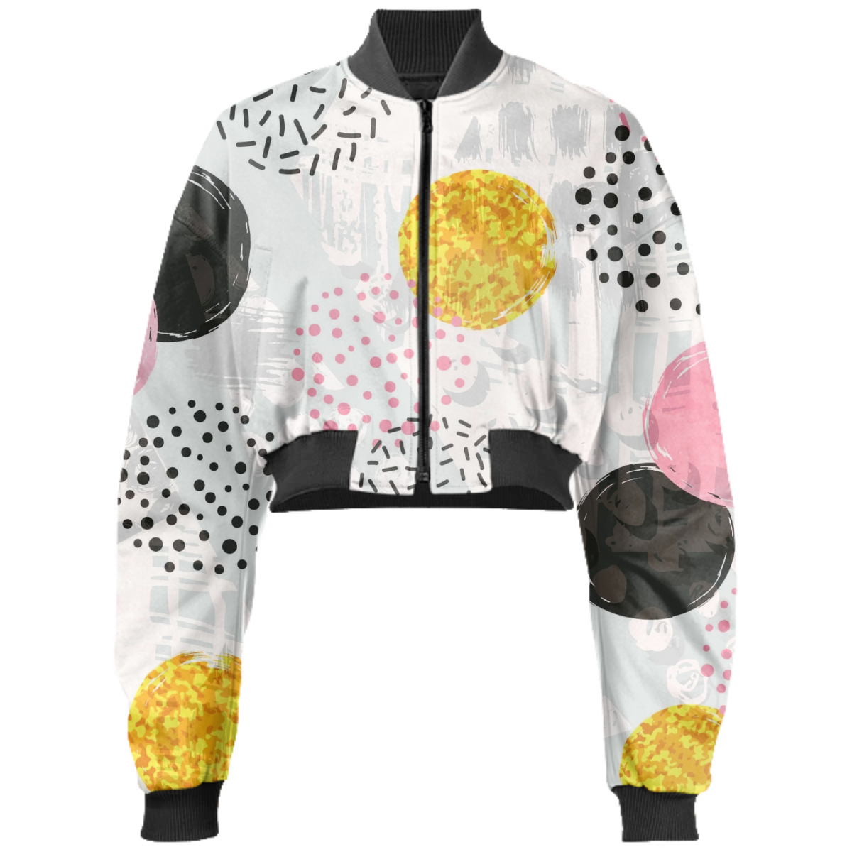 Designed by Gabriel Held this neoprene bomber jacket has a cropped fit with raglan sleeves a zip up front and two welt pockets. Matches with the Gabriel Held Mini Zip Skirt.