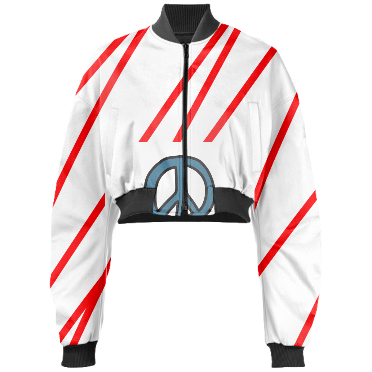 Designed by Gabriel Held this neoprene bomber jacket has a cropped fit with raglan sleeves a zip up front and two welt pockets. Matches with the Gabriel Held Mini Zip Skirt.
