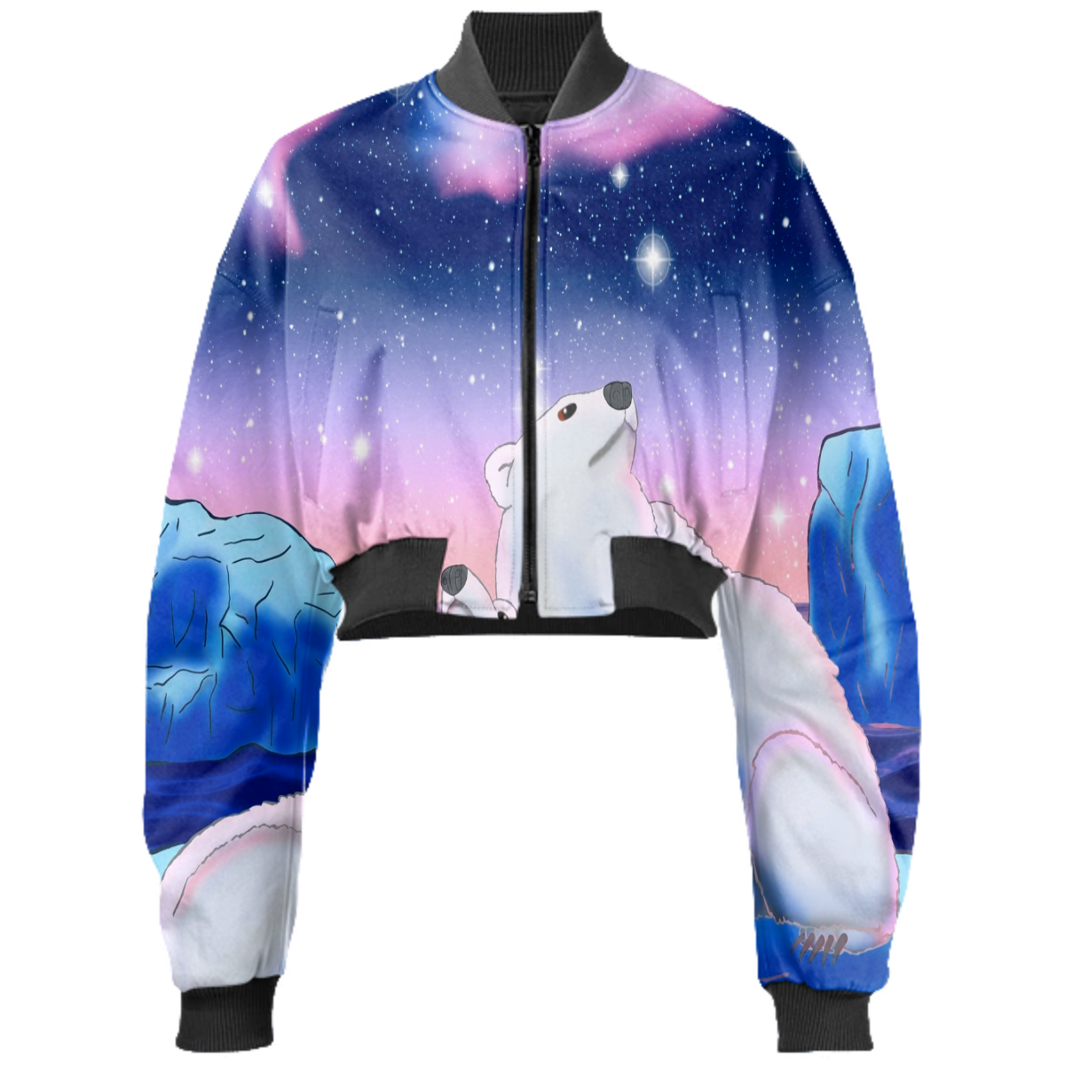 Designed by Gabriel Held this neoprene bomber jacket has a cropped fit with raglan sleeves a zip up front and two welt pockets. Matches with the Gabriel Held Mini Zip Skirt.