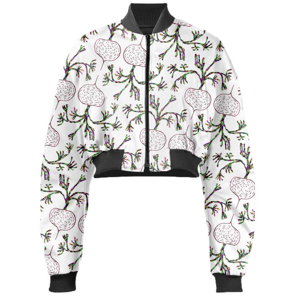 Designed by Gabriel Held this neoprene bomber jacket has a cropped fit with raglan sleeves a zip up front and two welt pockets. Matches with the Gabriel Held Mini Zip Skirt.